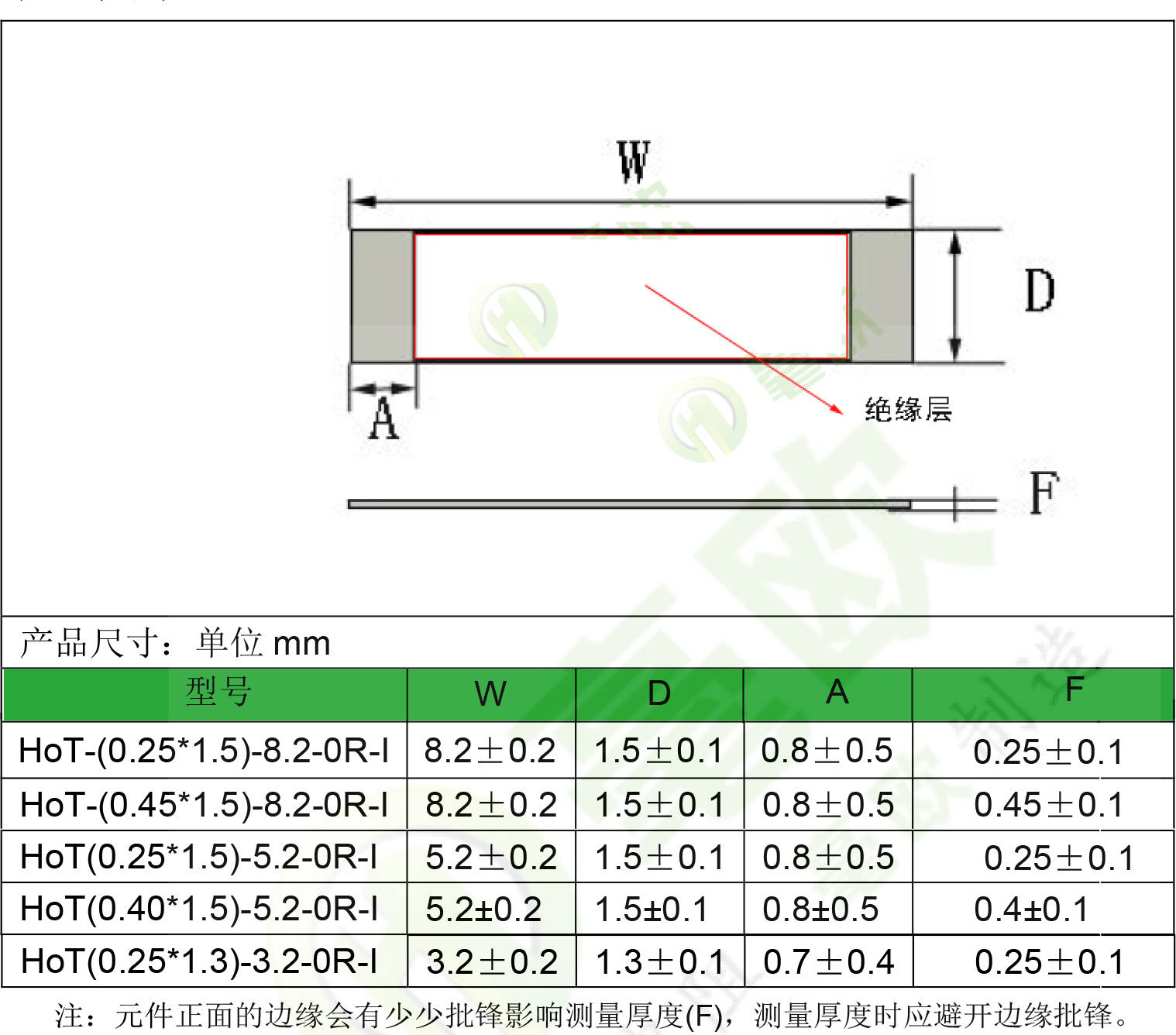 Chip jumper resistance: ● Alloy sheet chip, intermediate insulation treatment of sealing process, good welding performance ● High reliability, high overload capacity, overload current 10A~30A ● Meet ROHS requirements and halogen-free requirements