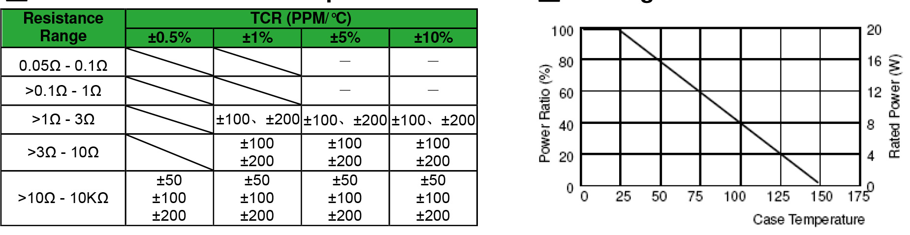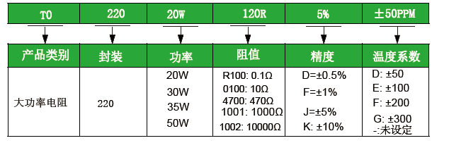 Power resistance: ● Power: 20~50W ● Resistance value: 05mR~10KR ● Accuracy: ± 0.5% ± 1% ± 5% ± 10% ● Temperature coefficient: ± 50, ± 100, ± 200, ± 300, unset (ppm)