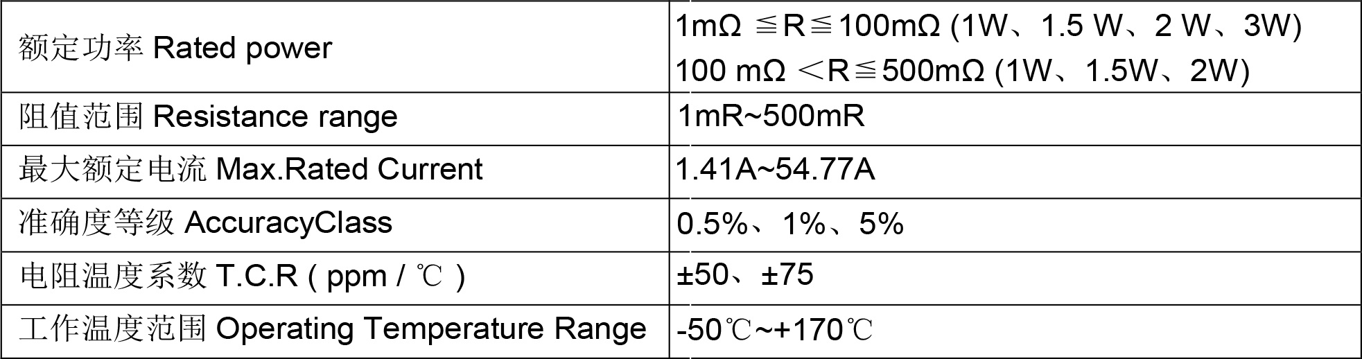 4. Resistance temperature coefficient TCR × 10-6/℃±50ppm,±75ppm