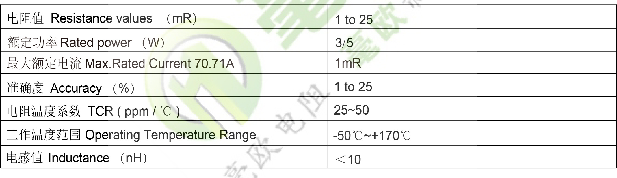 3. Resistance temperature coefficient TCR (25~50ppm/℃)
