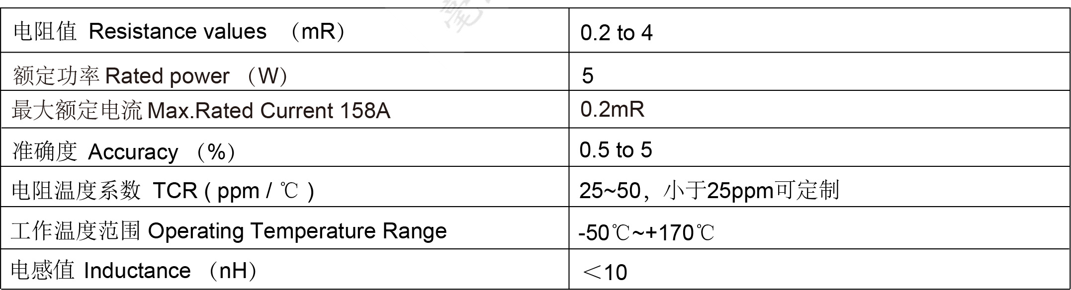 4. Resistance temperature coefficient TCR (25~50ppm/℃)