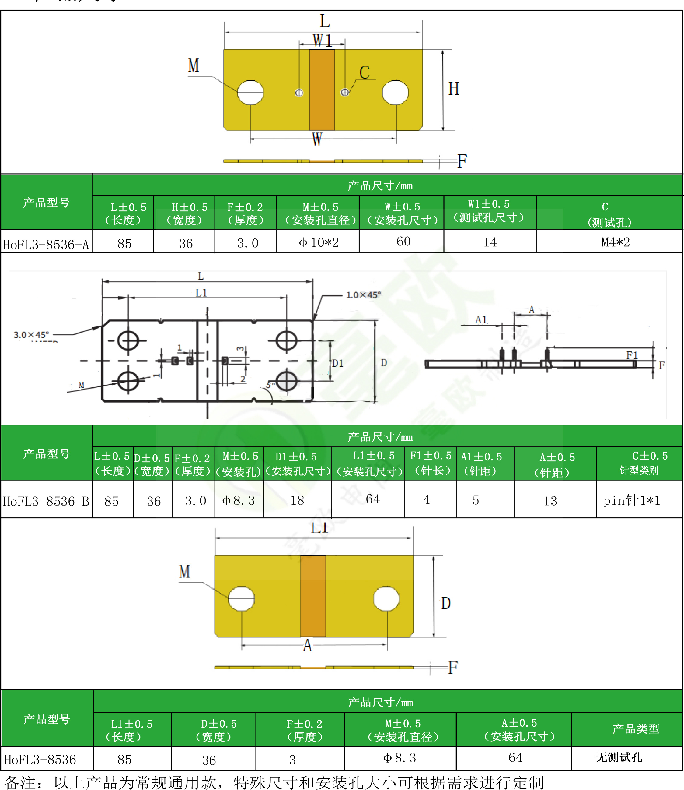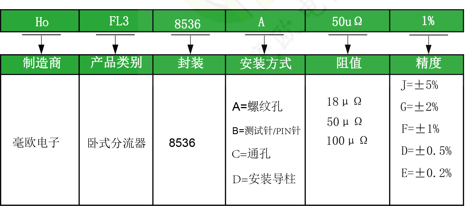 Automobile diverter: HoFL3-8536 ● Rated current: 400A ● Resistance value: 18 μ Ω、50 μ Ω、100 μ Ω ● Product accuracy: 0.2%~5% ● Accept customization